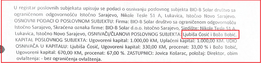 Između podnošenja prijava CIK-u, odnosno dva mandata, gradonačelnik je uspio osnovati i firmu za proizvodnju električne energije “BIO- B Solar” Istočno Novo Sarajevo. Firmu je osnovao 2023. zajedno sa jednim od privrednika bliskih vlastima u Istočnom Sarajevu, odnosno Božom Bobićem.