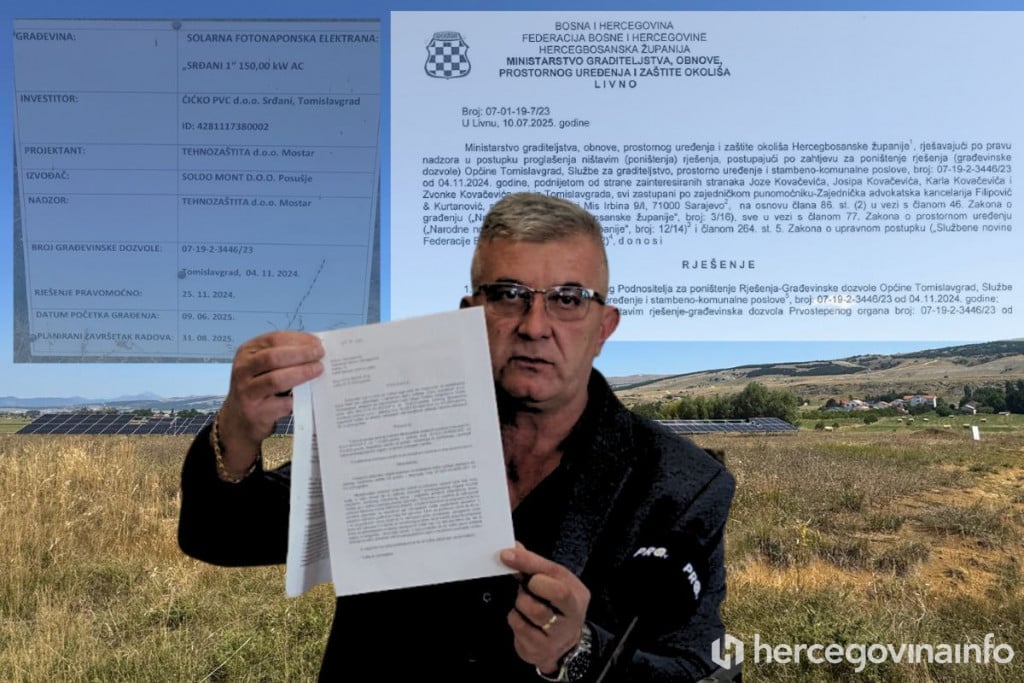 Prva lokacijska dozvola za solarnu elektranu “Srđani 1” u naselju Srđani kod Tomislavgrada izdana je kompaniji Ćićko PVC 20. rujna 2023. godine, a u njoj se već tada navode elementi koji otvaraju ozbiljna pitanja o zakonitosti i opravdanosti projekta.