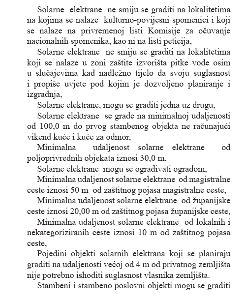 U prostorno-planskim uvjetima stoji da “izgradnjom objekta solarne elektrane nije ugrožen javni interes” i da se lokacija ne nalazi u zoni zaštitnih koridora.