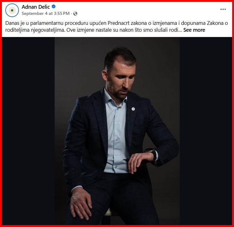 Prije nego što su se obratile Ombudsmanu, pokušale su razgovarati i sa federalnim ministrom za rad i socijalnu politiku Adnanom Delićem. Par dana prije našeg razgovora ministar Delić objavio je na facebooku status o izmjenama i dopunama Zakona o roditeljima njegovateljima. Uz ovaj post ministar Delić objavio je vlastitu fotografiju na kojoj – gleda u sat – valjda kako bi poručio da je vrijeme za djelovanje. U svojoj objavi navodi kako su “slušali roditelje koji brinu o djeci i članovima porodica s najtežim invaliditetom”. Naše sagovornice kažu da njih nije slušao:
