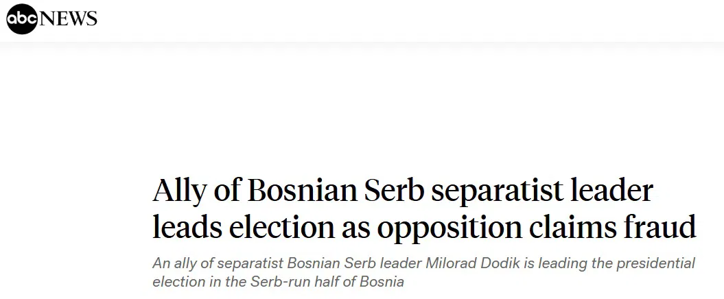 Dodik je od američkog ABC newsa dobio sličnu etiketu budući da je naslov glasio “Saradnik separatiste bosanskih Srba vodi na izborima dok opozicija ukazuje na izbornu krađu”.
