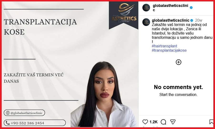 Sve je naizgled bilo regularno. Postojala je i web stranica ove klinike koja je nudila usluge estetske hirurgije, prevashodno transplantacije kose. Reklame su bile prisutne i na društvenim mrežama.