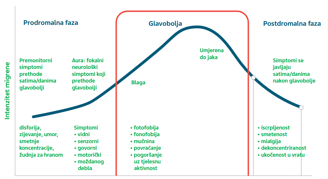 Kliničke faze migrene (iz: Maristela Stojić: “Klinička slika migrene”)