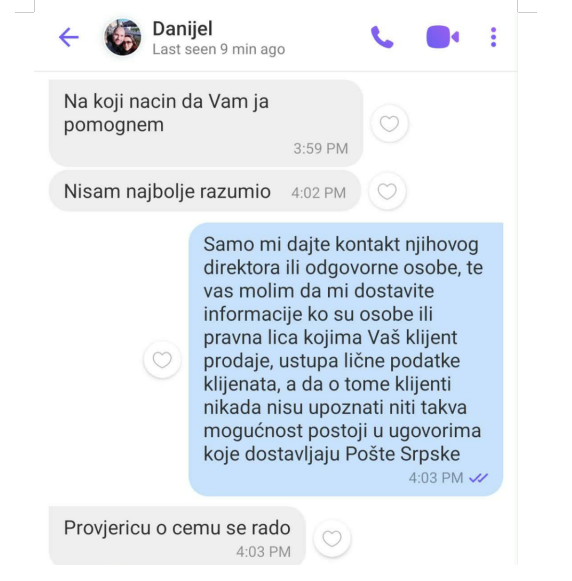 Redakcija je kontaktirala advokata Danijela Miloševića s pitanjem da li njegovi klijenti prodaju lične podatke korisnika, ali odgovor nije stigao. Nismo uspjeli dobiti ni kontakt direktora kompanije Dragana Danojevića.