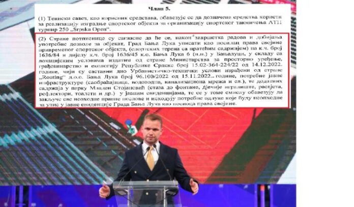 Mada je u taj projekat uloženo desetine miliona maraka i iz gradskog budžeta i iz kreditnih zaduženja, grad Banjaluka nije upisan kao vlasnik sportskih terena na kojima je prošle godine održan teniski turnir „Srpska open“.
