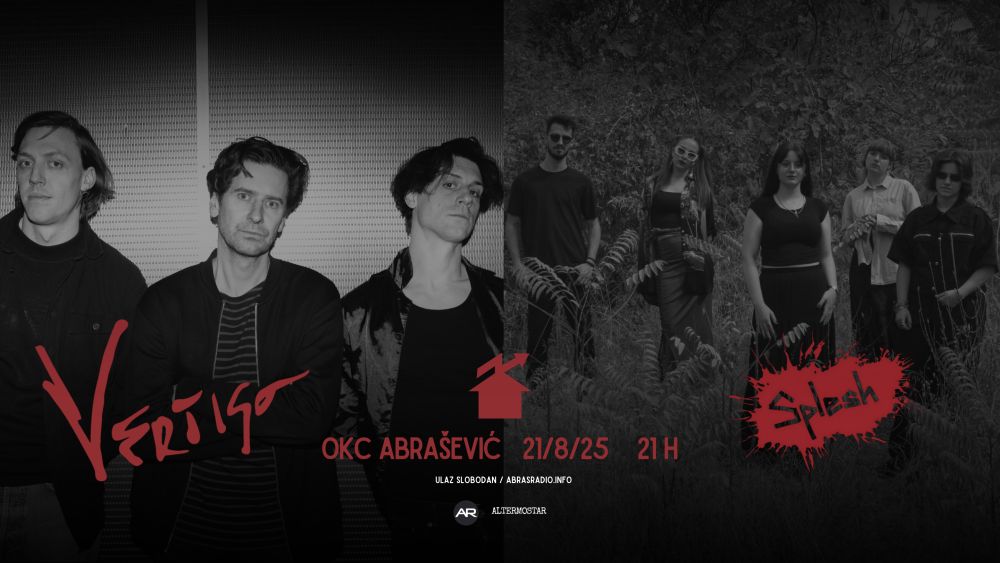 Berlinski trio Vertigo karakteriše moderan alternativni zvuk srodan Nirvani i drugim grunge postavkama, ali također kao svoje utjecaje navode i Joy Division, The Doors i The Wipers. Prvi put pred mostarskom publikom nastupit će u četvrtak, 21. augusta, sa lokalnim snagama Splesh. Vertigo opisuje kako u svojim pjesmama kreće u potragu, postavlja velika pitanja i luta, čak i pleše, opasno blizu unutarnjeg ponora: To je poetska potraga. Ples na žici. Sve to može biti prilično intenzivno uživo. Pored snažnog, iskrivljenog zvuka koji ovo troje stvaraju, određene bijesne energije, u muzici se javljaju i vrlo tihi, ranjivi i puni čežnje trenuci. Čežnja za dolaskom na svoje mjesto u svijetu, osjećaj izgubljenosti, sumnja u stvarnost vlastitog života, prevazilaženje ponora i stalni bijeg, ponekad vrlo avanturistički. Bend čine gitarista i vokal Tjim Visconti, basista Ole Thomas i bubnjar Charlie Perris koji uoči posjete našoj zemlji garantuju vrtoglavicu u Mostaru. Splesh je mostarski alternativni rock bend ranije poznat kao Skunk Anansie Tribute Band koji se 2024. okreće autorskom radu te kreira alt rock fuziju s podlogom rocka i metala i elementima etno muzike. Pjesme se bave temama bunta i ljubavi te osvrtima mladog čovjeka na društvene, političke i ekološke probleme svakodnevnice. Bend čine pjevačica Darija Matijević, gitarista Mate Bazina, basistica Luna Katarina Karan, gitaristica i vokal Vedrana Falak te bubnjarka Petra Banović.