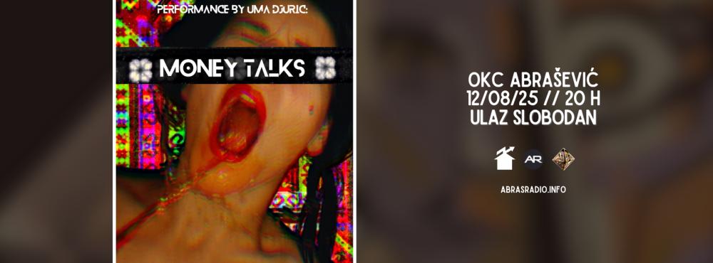 Plesni performans o novcu, požudi i preživljavanju u režiji i izvedbi Ume Đurić, postavlja hipotezu: Svi imaju cijenu. Zato je važno znati vlastitu. Prizivajući MONEY TALKS, pornografski trend iz 90-ih gdje bi muškarci nepoznatim ženama na ulici nudili keš za porno uradak, ovaj performans propituje vrijednost i one koji je određuju. Počinjemo sa yogom. Završavamo u transu. Ples se pretače u kolektivnu ekstazu, gdje se novac ne troši, već se guta, razmjenjuje i alhemizira.