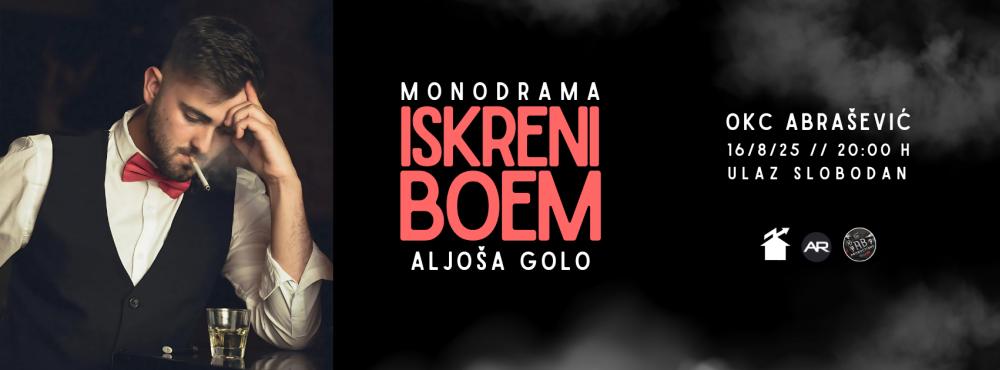 ‘Iskreni boem’ je pjesnička monodrama amaterske pozorišne grupe PUB produkcija iz Mostara, koja govori o “čovjeku koji bez zadrške otkriva svoju dušu pred publikom, kroz niz emotivnih i ogoljenih ispovijesti”. Kroz ličnu poeziju i “život ispunjen čežnjom, promašenim ljubavima i izgubljenim snovima,” vodi nas glumac Aljoša Golo. “Predstava je svjedočanstvo o ranjivosti, usamljenosti i vječnoj potrazi za smislom. Boem ovdje nije romantični junak, već čovjek koji se raspada pred nama, iskreno, bez uljepšavanja. Ovo nije samo priča o ljubavi, već i o samouništenju, kajanju i tihoj nadi za oprost”, najavljuju iz PUB produkcije.