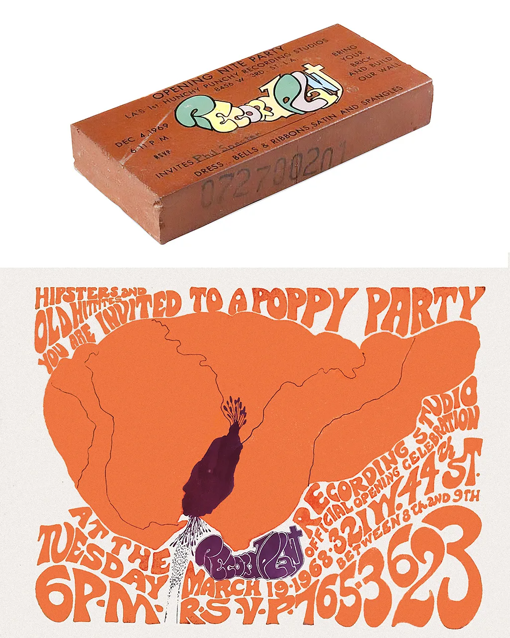 Zvjezdane zabave u studijima bile su legendarne – pozivnica za otvaranje ogranka u Los Angelesu 1969. godine (na slici gore) bila je u obliku cigle (Izvor: Arhiva Chrisa Stonea)