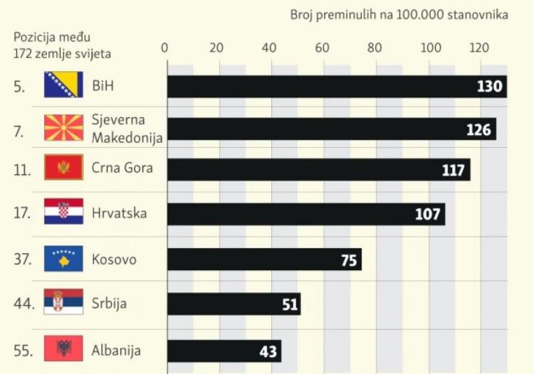 Novi podaci za zemlje sa najvećom stopom umrlih: BiH pri samom vrhu