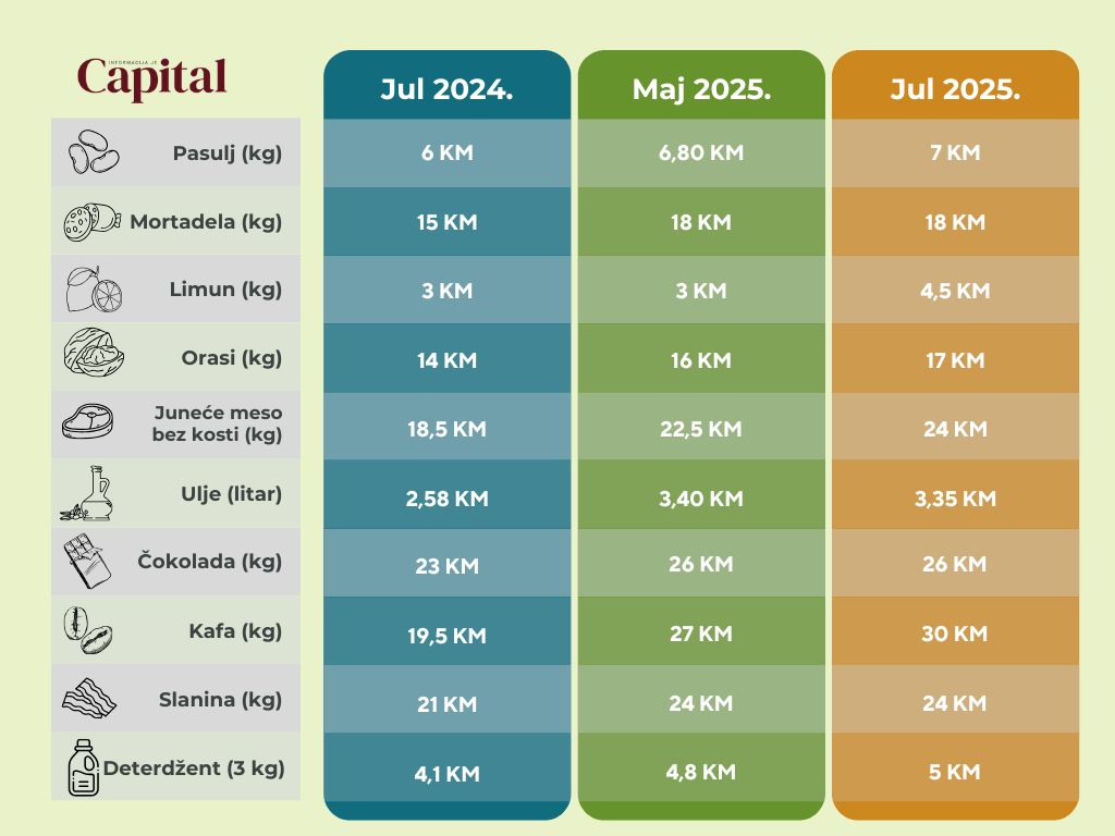 Tu poskupljenjima nije kraj. Kilogram pasulja je poskupio sa šest na sedam maraka, kilogram mortadele sa 15 na 18 KM, a limuna sa tri na 4,5 KM.