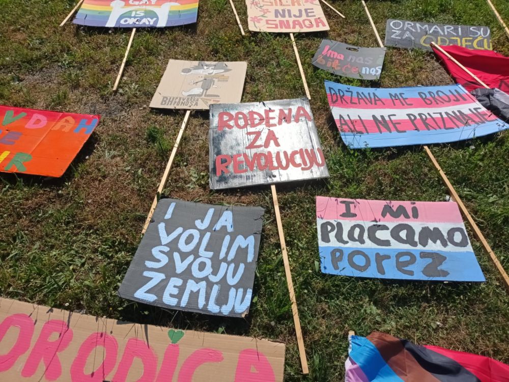 Učesnici i učesnice nosili su brojne transparente na kojima su podsjetili da nemaju svi građani u Bosni i Hercegovini jednaka prava, takođe učesnici Povorke nosili su zastave i transparente podrške za Palestinu.
