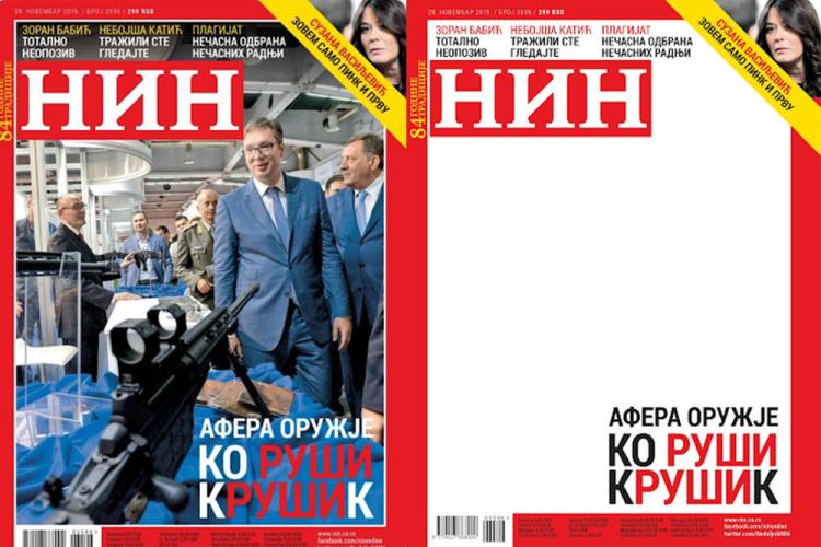 Beogradski nedeljnik NIN na naslovnoj strani današnjeg izdanja nema fotografiju, saopštio je izdavač Ringijer Aksel Špringer Srbija, a glavni i odgovorni urednik nedeljnika Milan Ćulbrk izjavio je FoNetu da će se NIN sa promenjenom naslovnom stranom pojaviti na kisocima u Beograd u toku dana.