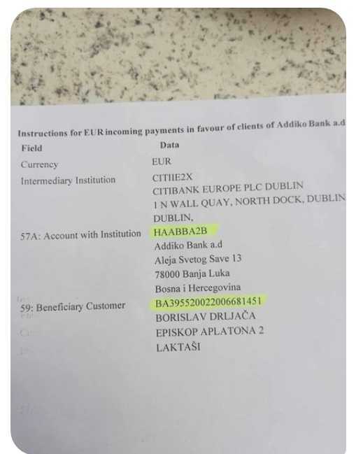 Otvoren je i devizni račun na ime Borislava Drljače u prilogu.