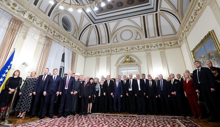 U svečanom salonu Predsjedništva BiH večeras je organiziran prijem povodom Dana državnosti BiH kojeg su upriličili predsjedavajući i član Predsjedništva BiH – Željko Komšić i Šefik Džaferović.