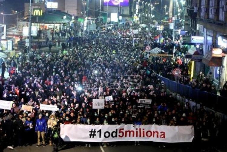 Protest “Jedan od pet miliona” završen je ispred Doma Narodne skupštine u kojoj, kako je poručeno sa razglasa, nema demokratije, ali da je demokratija na ulici.