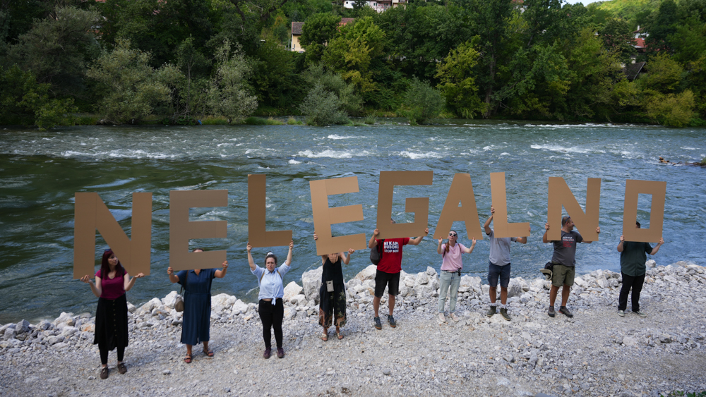 Aktivisti su okrenuti ka Vrbasu držali natpis „nelegalno“, da bi, prema njihovim riječima, skrenuli pažnju na ilegalne radove koji su započeti bez potrebnih dozvola.