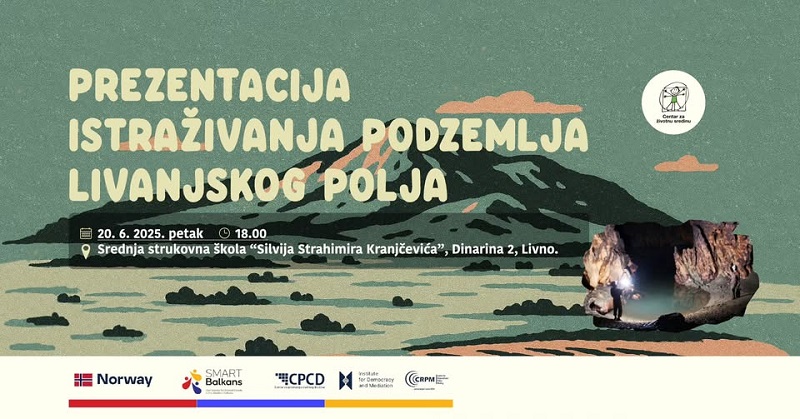 Centra za životnu sredinu poziva sve zainteresovane na predstavljanje rezultata istraživanja i predavanje “Istraživanje speleoloških objekata Livanjskog polja”.
